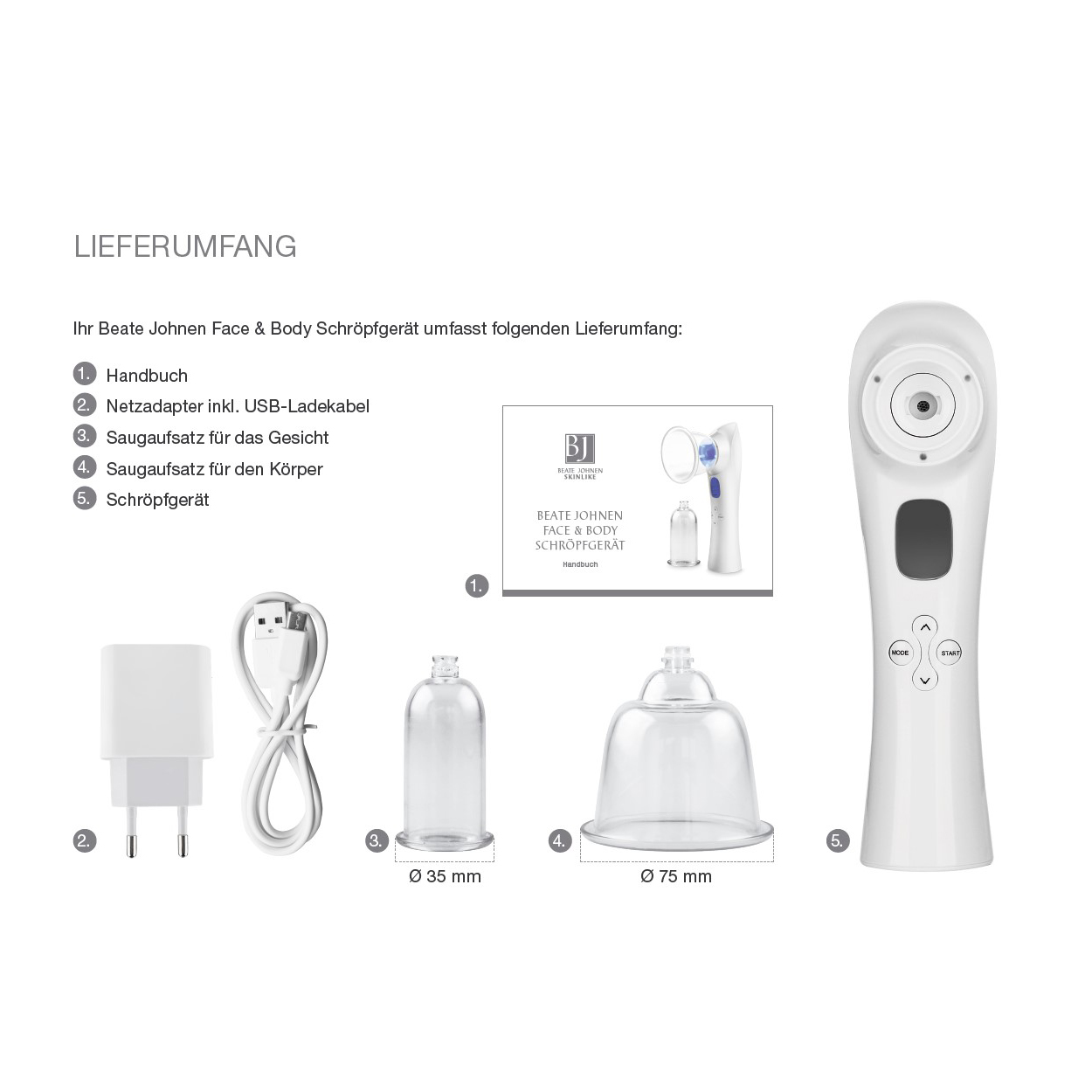 Ihr Beate Johnen Face & Body Schröpfgerät umfasst folgenden Lieferumfang: