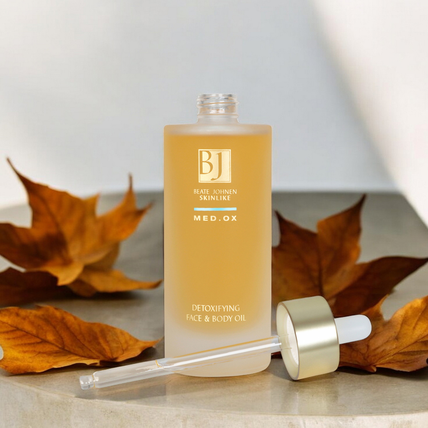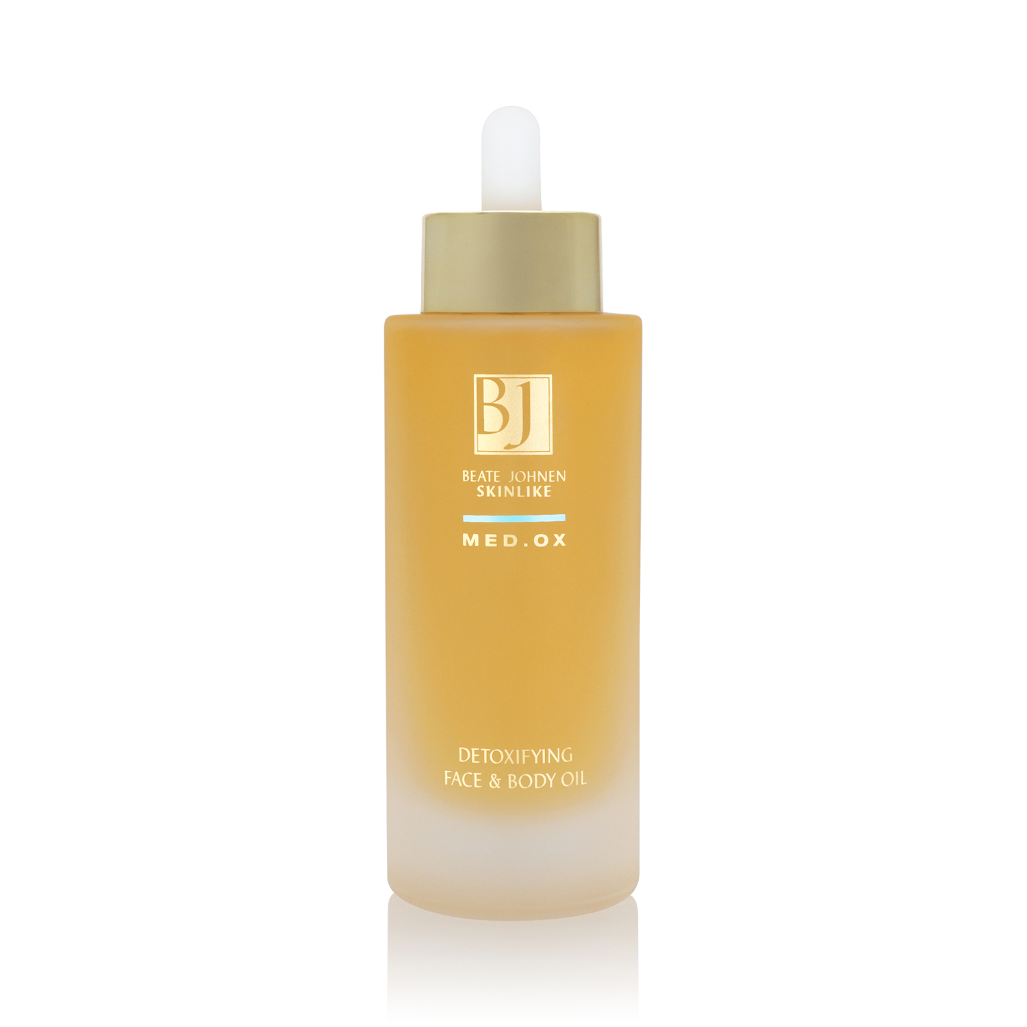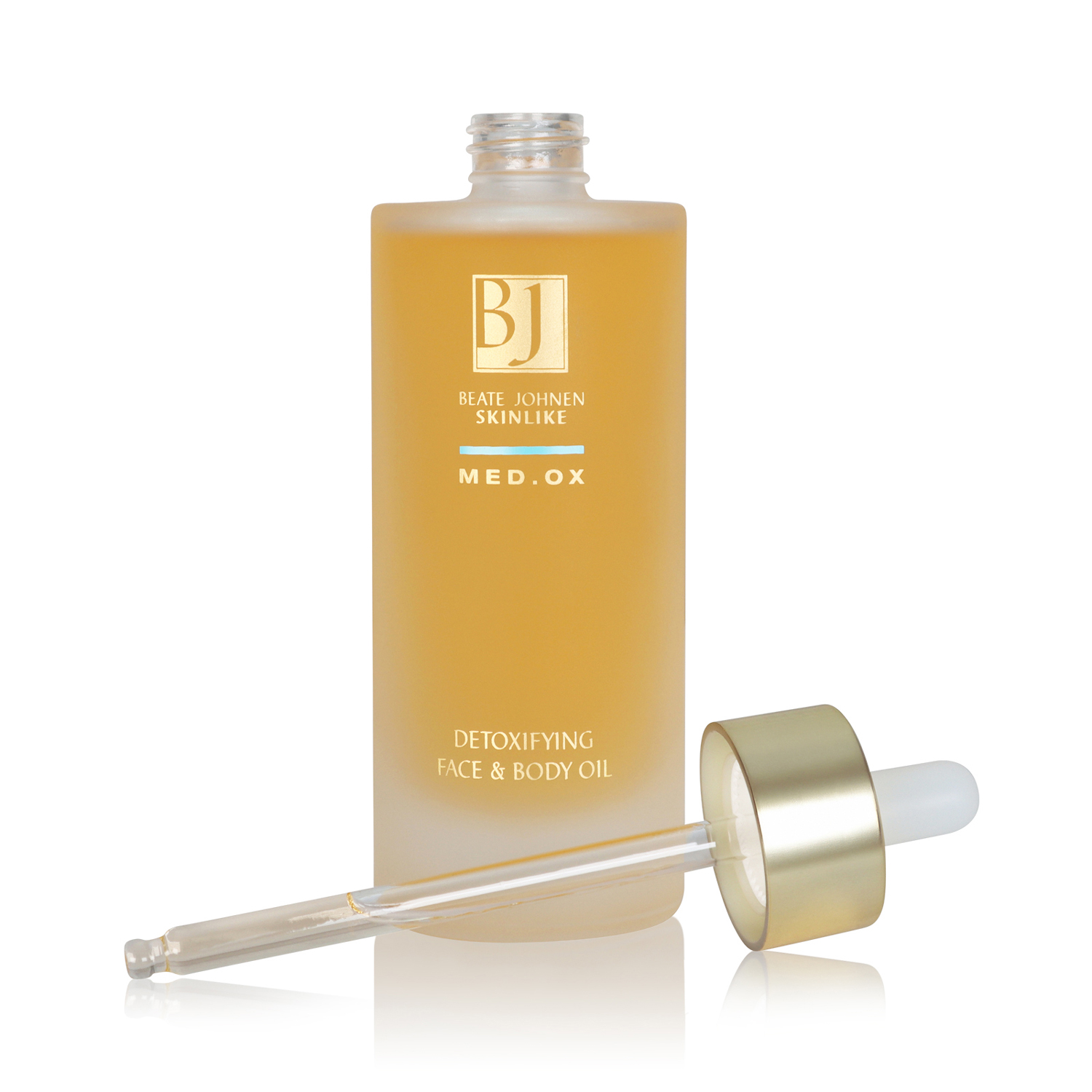 Ein seidiges, reichhaltiges und luxuriöses Öl, das dennoch leicht und ergiebig ist und unglaublich schnell einzieht. Das Beate Johnen SKINLIKE MED.OX Detoxifying Body Oil wirkt intensiv nährend und glättend, ohne dabei einen Fettfilm zu hinterlassen oder die Poren zu verstopfen - für ein sichtbar gepflegtes Hautgefühl am ganzen Körper. Ein Extrakt aus der Grünalge wirkt hautschützend und unterstützt den hauteigenen Stoffwechselprozess. Es handelt sich hierbei um eines der stärksten natürlichen Antioxidantien, welches sogar Vitamin E als Radikalfänger übertrifft und die Zelle effizient vor UV-Schäden schützt.